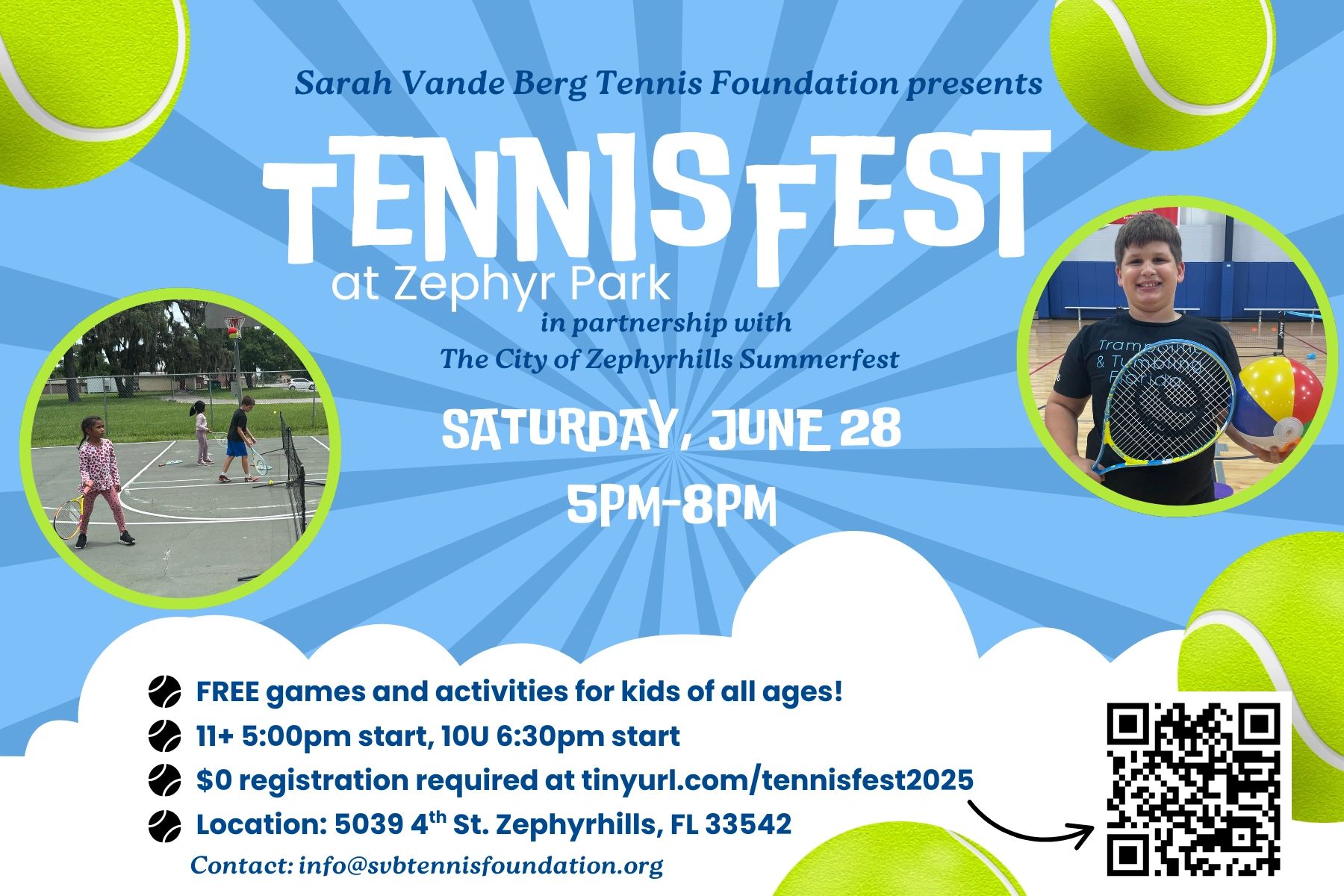 The 10th Annual City of Zephyrhills Summerfest is a full day of games, entertainment and tennis! We're hosting a free junior tennis clinic from 5pm-8pm. Registration required at the link below.
